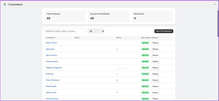 - Click Sync All Customers button in the top-right corner
